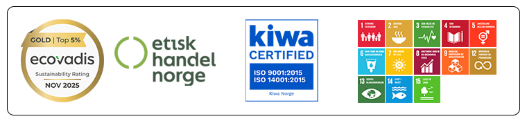 Artisti er ISO-sertifisert i Ledelsessystem for kvalitet (NS-EN ISO 9001:2015) og Ledelsessystem for miljø (NS-EN ISO 14001:2015). Vi har GULL-status hos EcoVadis på vårt bærekraftsarbeid og vi er medlem av Etisk Handel Norge. Gjennom våre ISO-sertifiseringer dekker vi 12 av 17 bærekraftsmål.